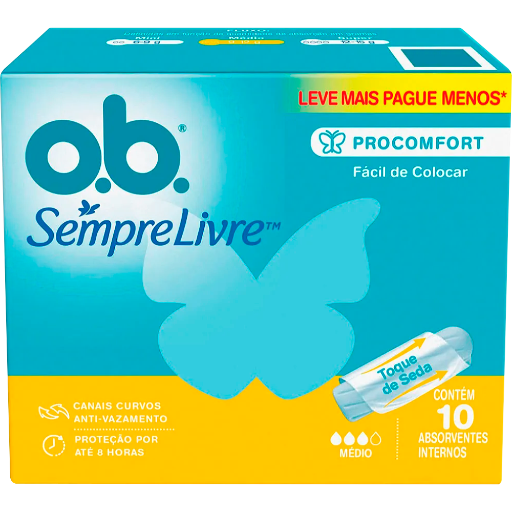 O Absorvente Interno o.b. Original Médio Leve 10 Pague 8 Unidades é ideal para quem busca proteção eficiente com excelente custo-benefício. Desenvolvido pela o.b., oferece segurança e discrição para o dia a dia.