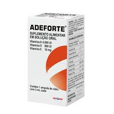 Adeforte Ampola Oral 3mL Adeforte Ampola Oral é um suplemento vitamínico indicado para auxiliar na reposição de vitaminas essenciais ao bom funcionamento do organismo. Sua fórmula contém vitaminas A, D e E, que contribuem para a saúde da pele, fortalecimento do sistema imunológico e manutenção da saúde óssea. A apresentação em ampola oral facilita a ingestão e proporciona absorção eficiente, sendo uma opção prática para complementar a rotina de cuidados com a saúde. Benefícios: