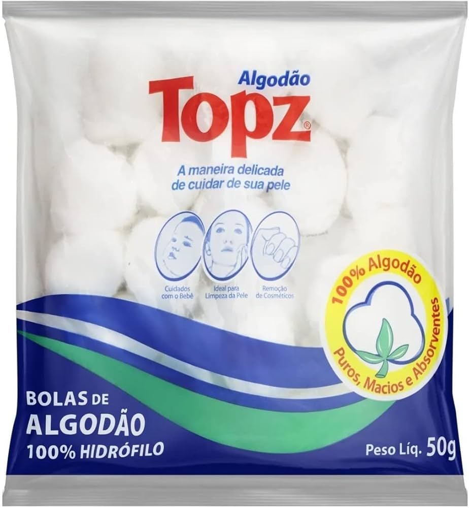Algodão Topz Bola 50g O Algodão Topz em Bolas é ideal para cuidados diários com a pele, oferecendo maciez e alta absorção. Perfeito para a remoção de maquiagem, aplicação de produtos cosméticos, higiene pessoal e uso em curativos. Produzido com fibras de qualidade, garante suavidade ao toque e segurança no uso. A embalagem com 50g é prática e versátil, sendo indispensável no dia a dia. |