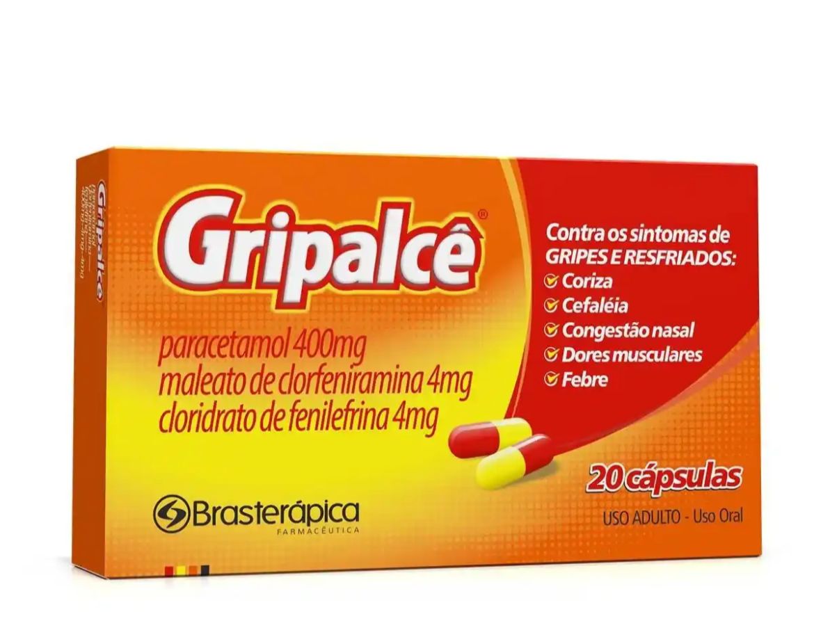 | GRIPALCE 20 CÁPSULAS É INDICADO PARA O ALÍVIO DE SINTOMAS DE GRIPE E RESFRIADO COMO FEBRE, DOR DE CABEÇA, DOR MUSCULAR, CORRIMENTO NASAL E CONGESTÃO SUA FÓRMULA COMBINADA ATUA RAPIDAMENTE PARA PROPORCIONAR CONFORTO E MELHORAR O BEM-ESTAR, DEVENDO SER UTILIZADO CONFORME ORIENTAÇÃO MÉDICA OU INSTRUÇÕES DA EMBALAGEM PARA GARANTIR SEGURANÇA E EFICÁCIA |