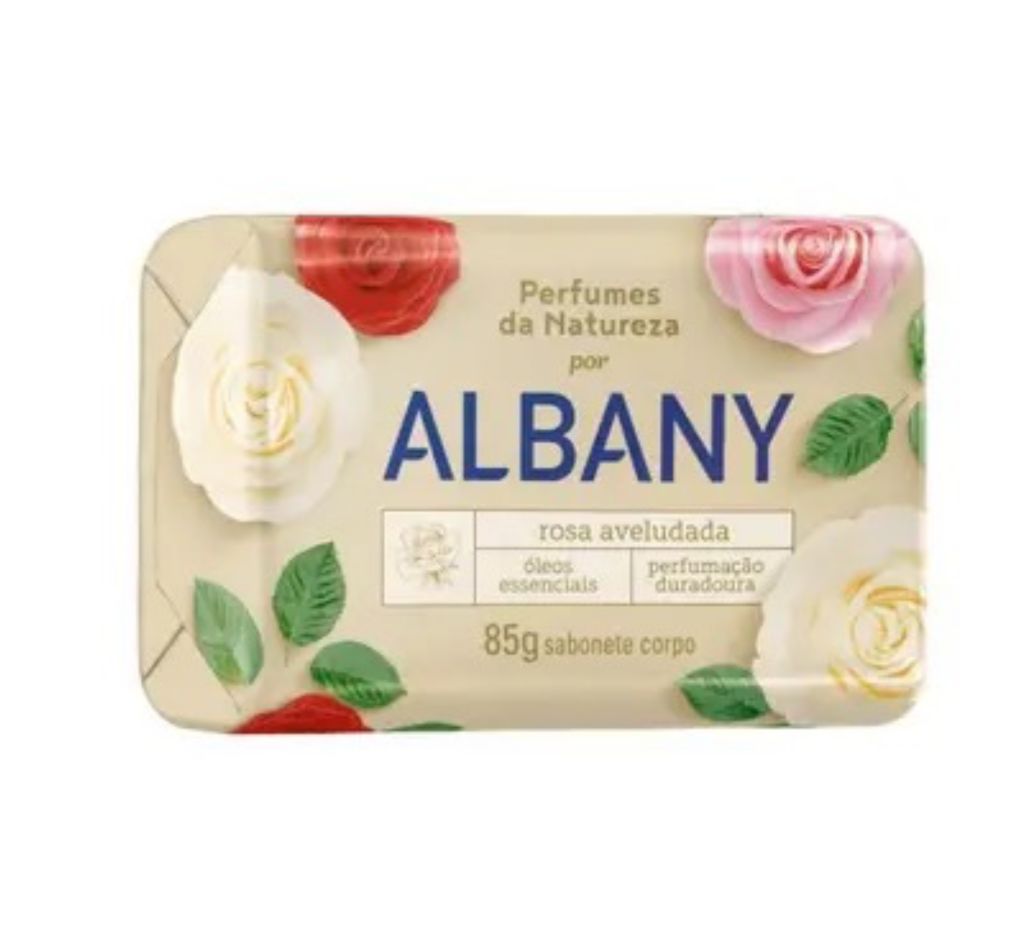 | SABONETE ALBANY ROSA AVELUDADA 85G E UM SABONETE EM BARRA DESENVOLVIDO PARA LIMPEZA SUAVE DA PELE, POSSUI FORMULA COM OLEOS ESSENCIAIS QUE AUXILIAM NO CUIDADO DIARIO, PROPORCIONANDO MACIEZ E SENSACAO AGRADAVEL APOS O USO; SUA FRAGRANCIA DE ROSA AVELUDADA OFERECE PERFUMACAO DURADOURA, TORNANDO O BANHO MAIS PRAZEROSO E REFRESCANTE; INDICADO PARA USO DIARIO EM TODOS OS TIPOS DE PELE, REMOVE IMPUREZAS SEM AGREDIR, MANTENDO O TOQUE SUAVE E PERFUMADO EMBALAGEM DE 85G PRATICA PARA O DIA A DIA |