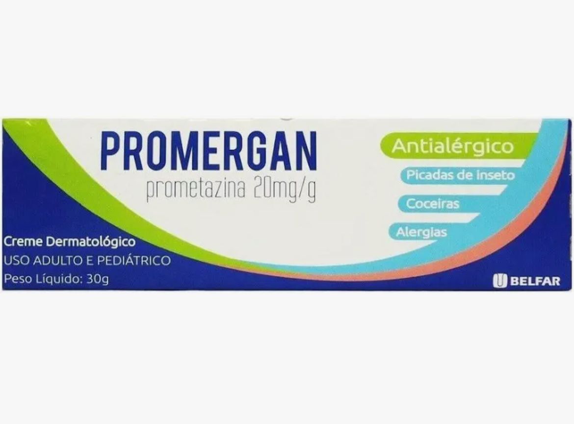 Promergan 20mg/g Creme Dermatológico 30g é um medicamento indicado para auxiliar no controle de alergias de pele, coceiras, irritações e processos inflamatórios dermatológicos leves. Sua fórmula contém prometazina, que possui ação anti-histamínica, ajudando a aliviar os sintomas de forma eficaz. O creme é de fácil aplicação, proporcionando absorção rápida e conforto na área tratada. A embalagem de 30g é prática para uso contínuo e permite aplicar a quantidade adequada conforme orientação médica. Importante: utilize somente sob prescrição médica ou orientação de um profissional de saúde. Evite aplicar em áreas extensas sem supervisão e não utilize em caso de alergia conhecida ao medicamento. Adquira Promergan 20mg/g Creme Dermatológico 30g e cuide da saúde da sua pele com conforto e eficácia. |
