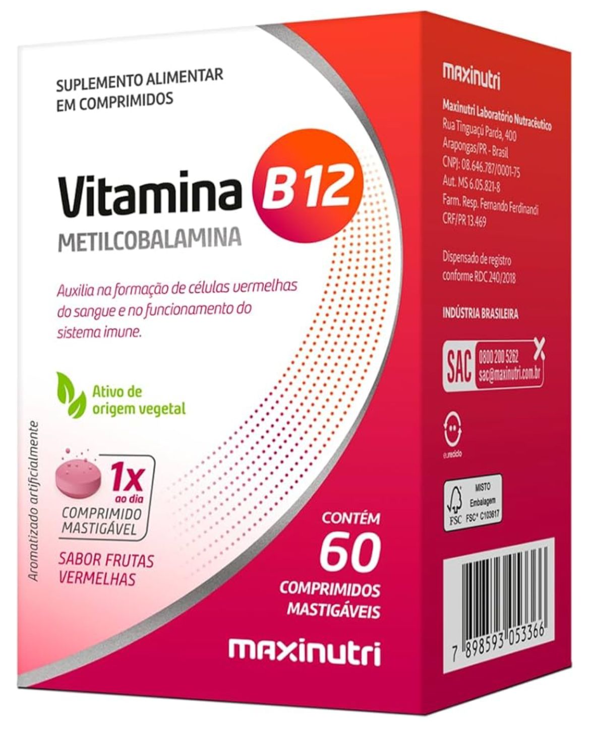 Vitamina B12 60mg com 60 comprimidos mastigáveis é um suplemento desenvolvido para auxiliar na manutenção da saúde do sistema nervoso, produção de energia e formação de glóbulos vermelhos. A vitamina B12 desempenha papel essencial no metabolismo, contribuindo para o bem-estar e disposição no dia a dia. Os comprimidos mastigáveis oferecem praticidade e facilidade na ingestão, sendo ideais para quem tem dificuldade em engolir cápsulas ou comprimidos tradicionais. A embalagem com 60 unidades garante um suprimento mensal, tornando a suplementação prática e contínua. Indicado para pessoas que desejam complementar a ingestão diária de vitamina B12 de forma conveniente e eficiente. Adquira Vitamina B12 60mg 60 comprimidos mastigáveis e promova energia, saúde e bem-estar de maneira prática e saborosa. |